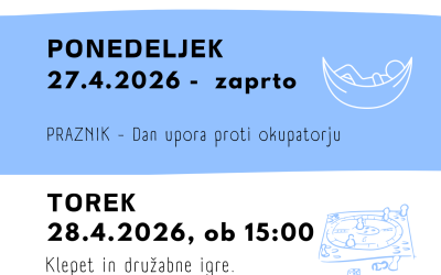Konec aprila bomo prav tako preživeli v Srečevalnici Podlubnik. Povabljeni k druženju, klepetu in na jogo.