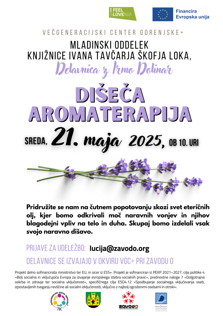 Mladinski oddelek knjižnice Ivana Tavčarja Škofja Loka bo poln dišav. Nujne so predhodne prijave na [email protected]